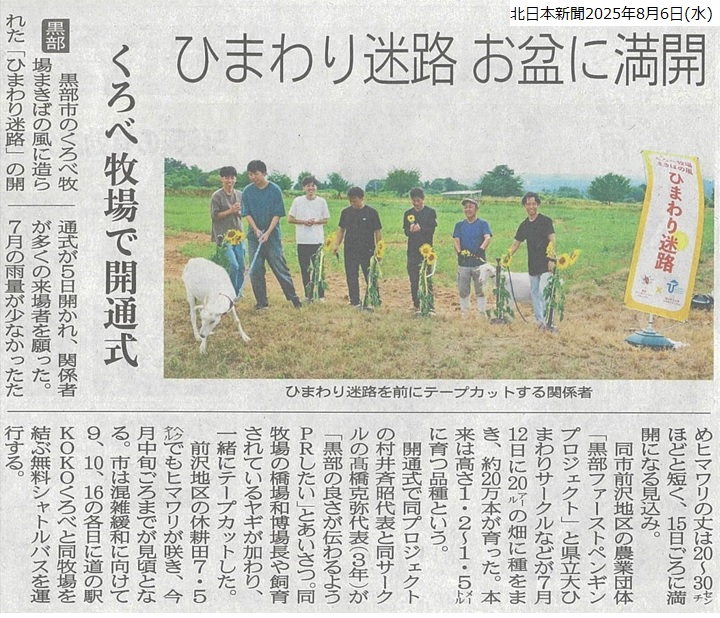 くろべ牧場まきばの風「ひまわり迷路」の開通式が8月5日に開かれました。15日くらいに満開になる見込み。