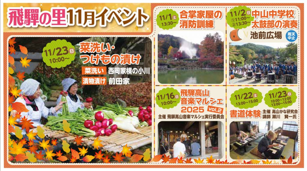 飛驒の里では、秋の深まりとともに、飛騨の里では季節を感じる催しを開催します。