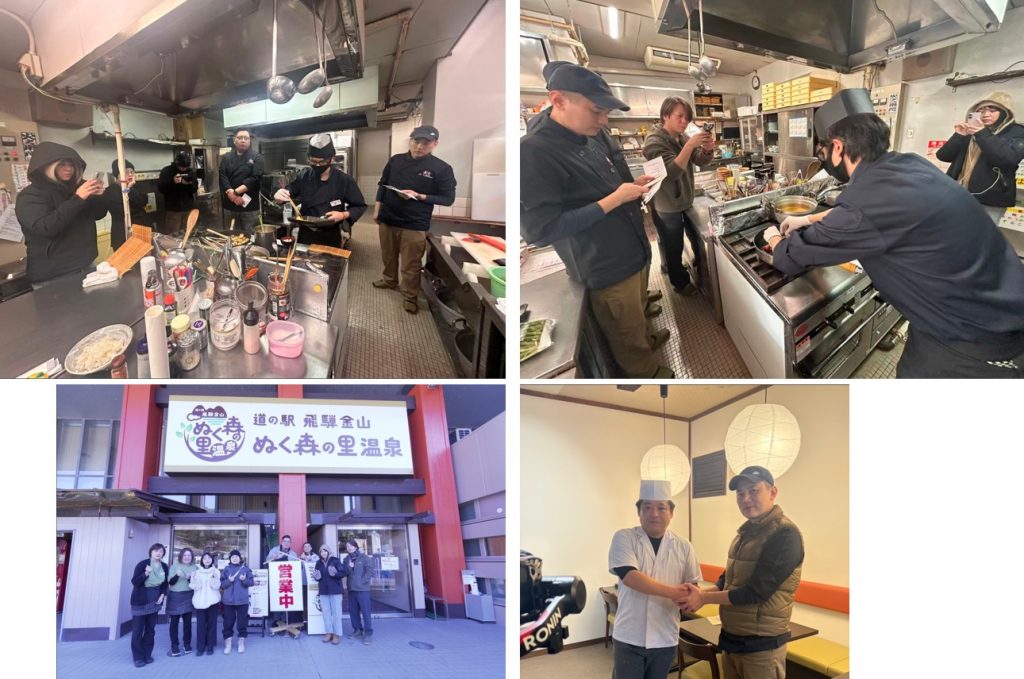 弊社の道の駅 飛騨金山ぬく森の里温泉と塩沢温泉 七峰館において、ご当地料理の試食及び料理人交流を行いました。