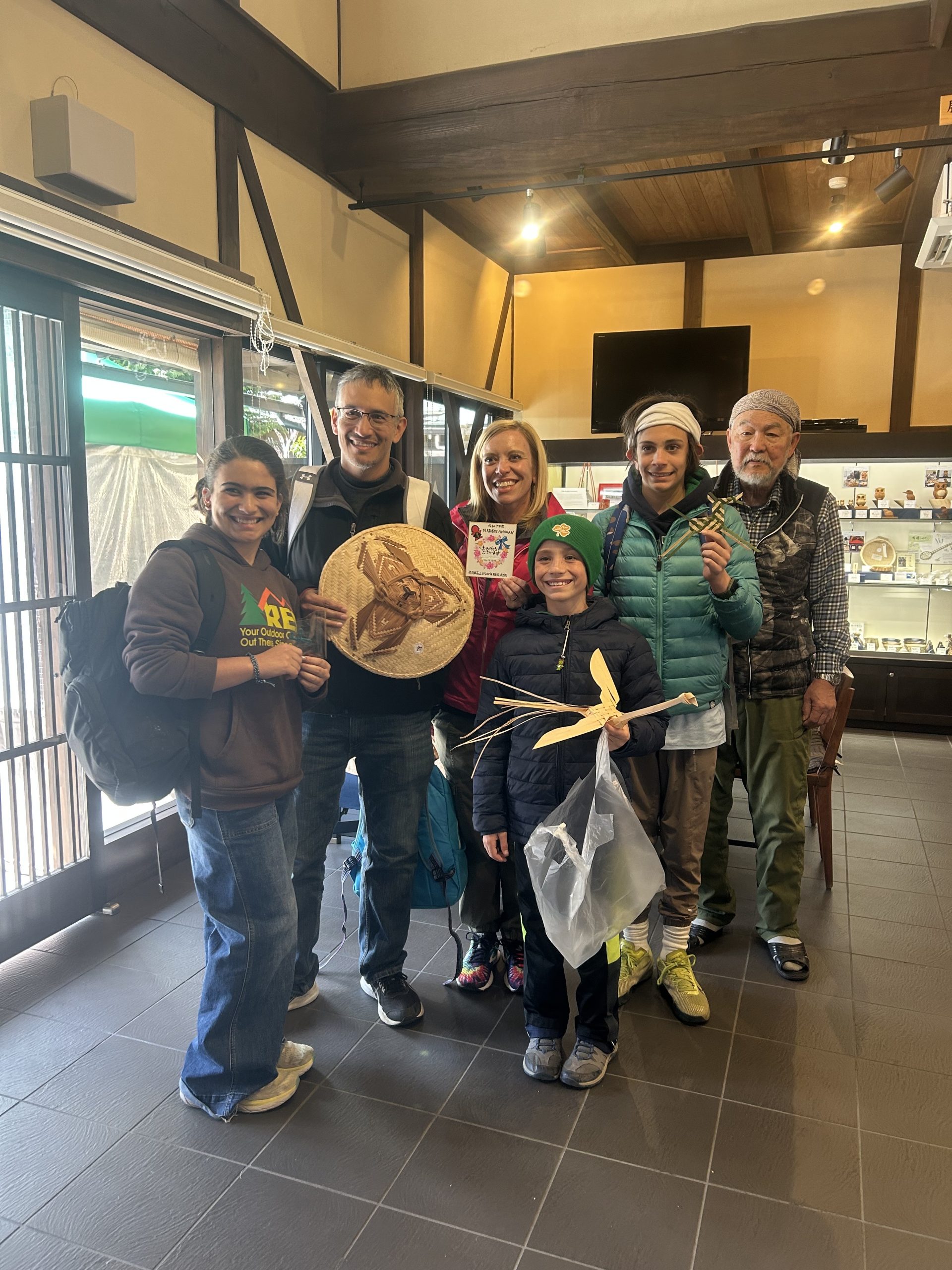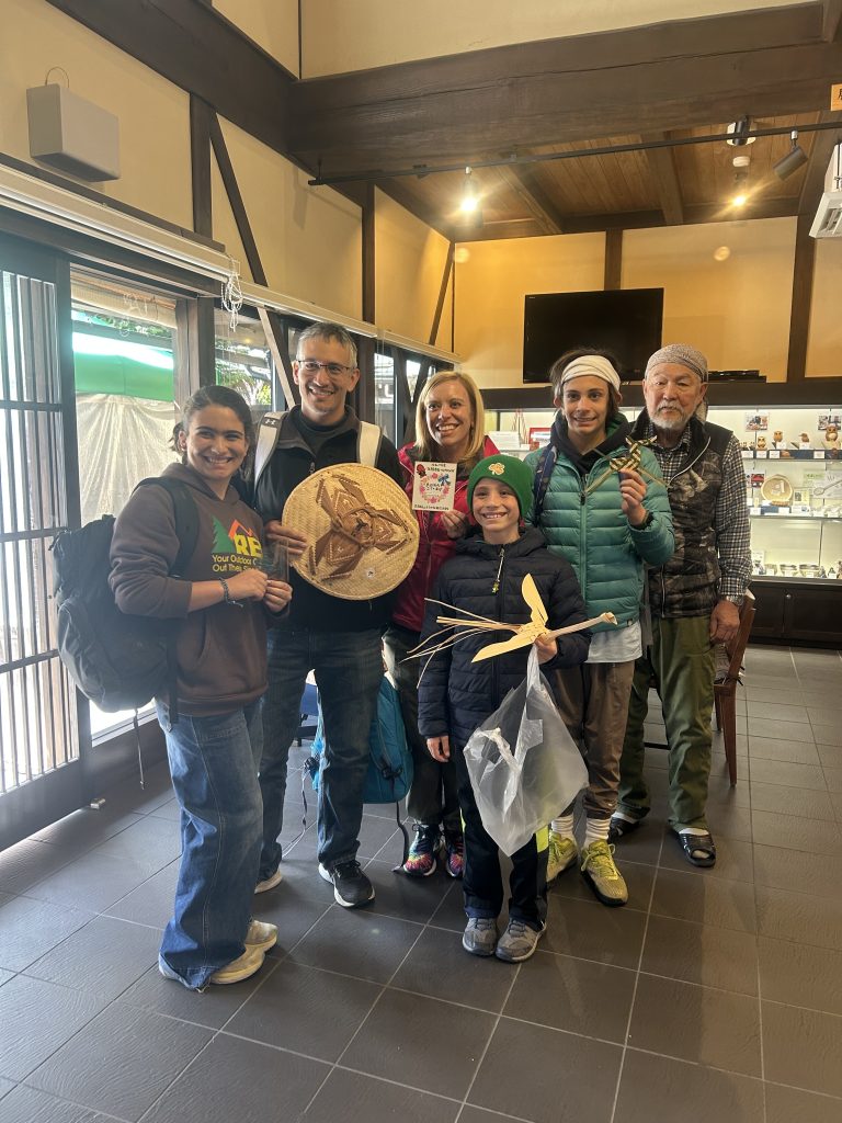 1万人目となったのは米国アリゾナ州からの10歳と12歳のご兄弟。宮笠の材料”ヒデ”を使った小物づくり体験で、それぞれ「鳳凰」と「馬」をつくりました。