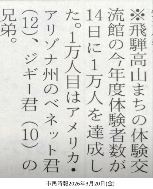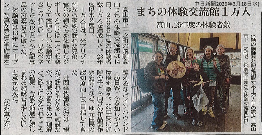 飛騨高山まちの体験交流館での今年度の体験者が、3月14日(土)に1万人を達成しました。