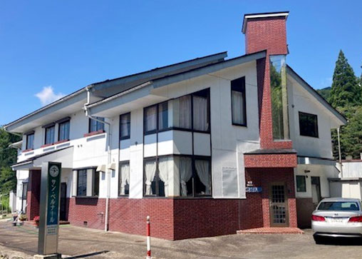 岐阜県郡上市高鷲町の山間、標高約1,000メートルの高地にあるペンション「サンベルナール」。西日本最大級のスノーリゾートエリア「TAKASU MOUNTAINS」の中心地、ダイナランドスキー場の登り口に位置する眺望抜群の宿泊施設です。